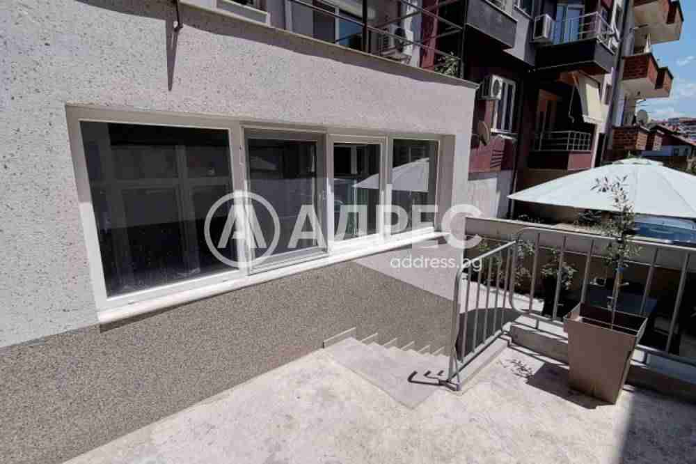 Състояние на имота: стени и тавани - на фина мазилка, с положена топлоизолация; подове - теракота; дограма - от PVC, с комарник; обособен кухненски кът с шкафове на два реда и монтиран бойлер под умивалника, напълно оборудван санитарен възел; монтирани климатици висок клас във всяко помещение. Във вътрешното помещение има извод за вода и канализация, което позволява да се монтира допълнително оборудване с ползване на топла и студена вода. Имотът се дава под наем за офис, фризьорски салон, козметично студио или салон за красота, масажно студио и други.
